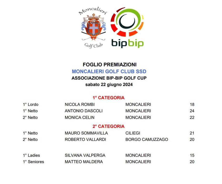 EVENTO: PREVENZIONE E MUSICA "V" EDIZIONE BIP BIP MONCALIERI GOLF CLUB“ - GARA DI BENECIENZA (22/06/2024) ...